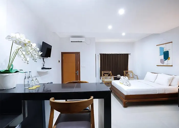 Este hotel está situado en el distrito Sunset Road, a 2 km de lugares de ocio como el Restaurante Cocoon Beach Club. En el hotel Amanlane Suite Seminyak Managed By Arm Hospitality, estarás a 10 minutos en coche del Glorieta de Dewa Ruci. También puedes visitar el Parque acuático Waterbom Bali, que está a 4 km. El hotel está cerca de la parada de autobús Soputan Intersection west, bien conectado con numerosos lugares de interés.
